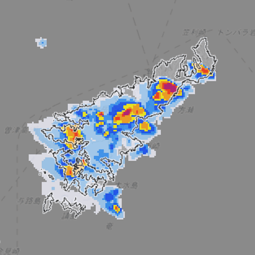 予報では降水確率20%だったんだが、大島の上だけ集中して雨雲が!