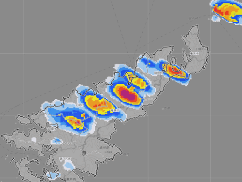 電波が入るところまでもどって、気象庁・雨雲レーダーを確認すると・・