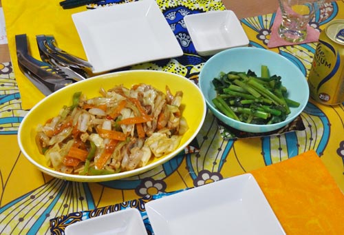 だいぶ前に買ってあったと謂う、キャベツを用いてホイコーロー風炒め。