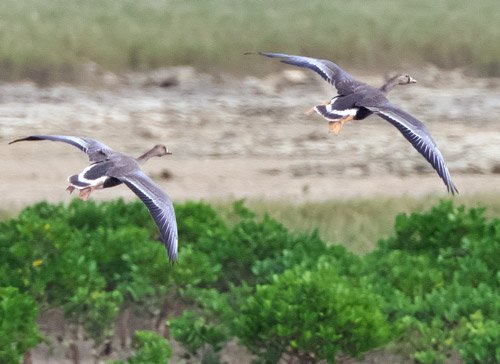 たまたま、マガンも飛来してくれて、遠いがじゅうぶん識別できた。