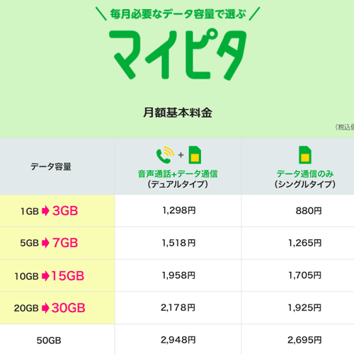 今はギガ倍増キャンペーン中のようで、10ギガになりオトクなようだ。