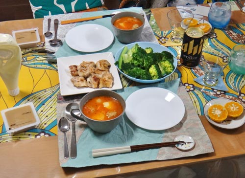 冷蔵庫の中をチェックしておいたから、なんとか夕メシをこさえる。