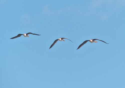 そしたら、上空を風切音させながら、小声で「グェ」と鳴く鳥が北上してく。