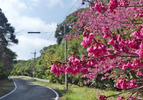 奄美自然観察の森への道すがら、もう昼なので、ヒザクラのもとで