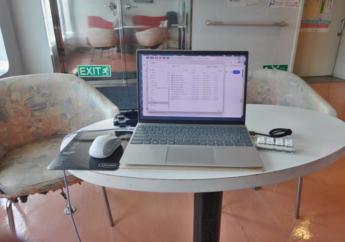 船上でもパソコンがあれば、デザインはできるから助かるわ゛〜。